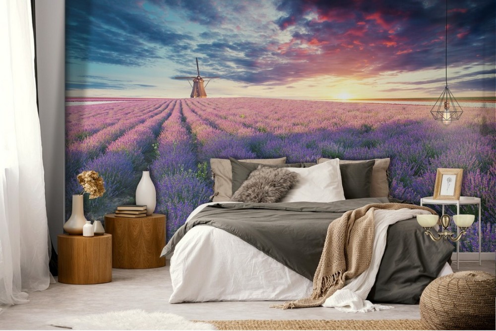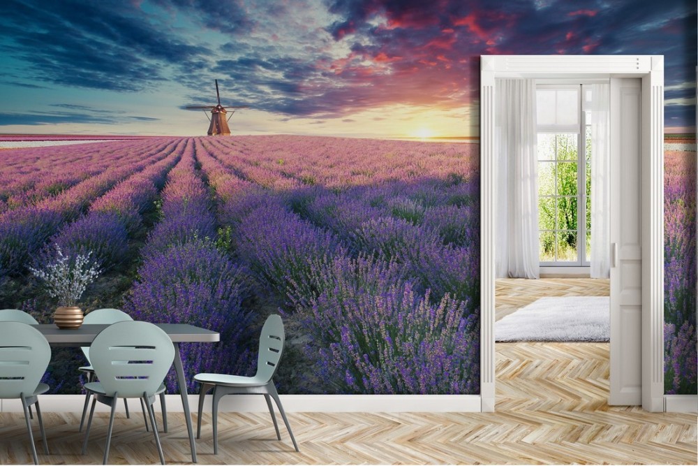 Wallpaper landscape meadow flowers with mill