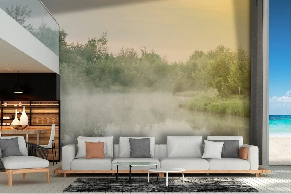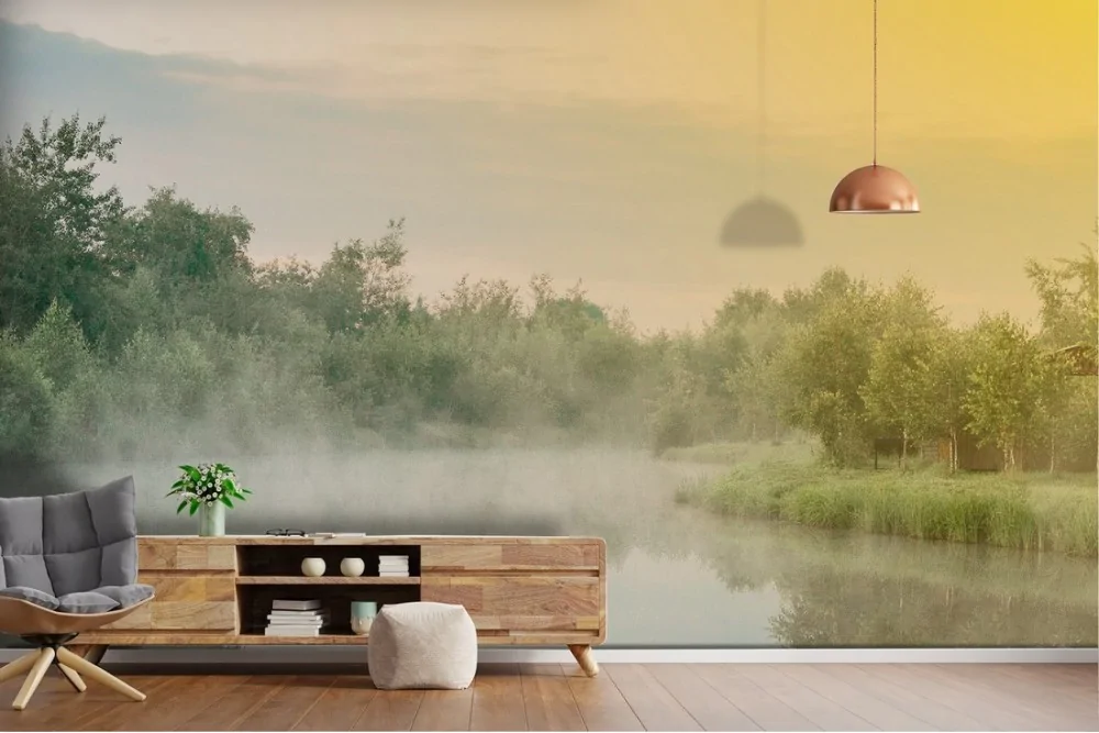 Tropical river landscape wallpaper with forest