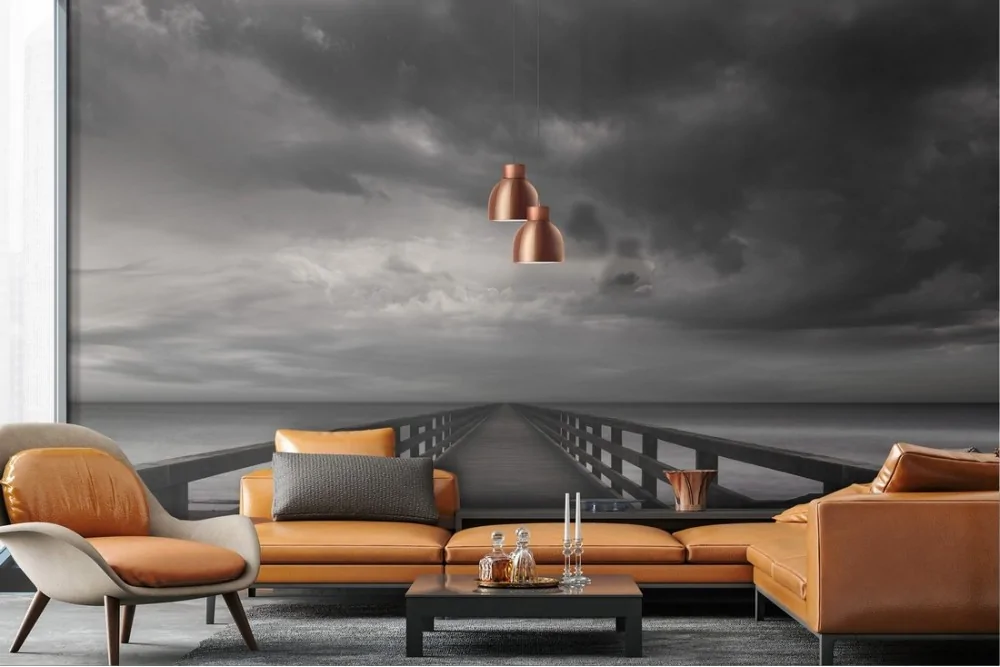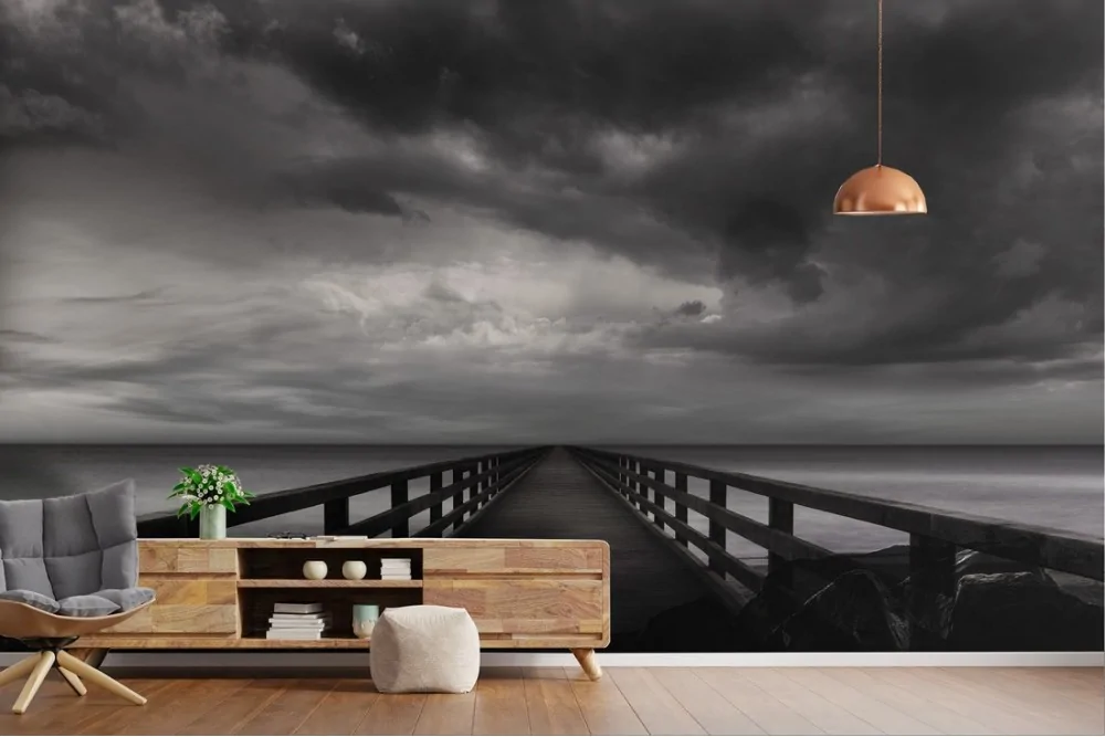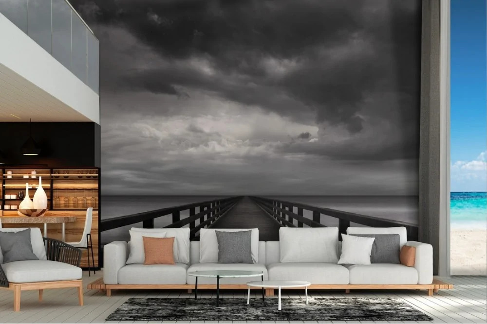 Wallpaper landscape cloudy sky sea pier