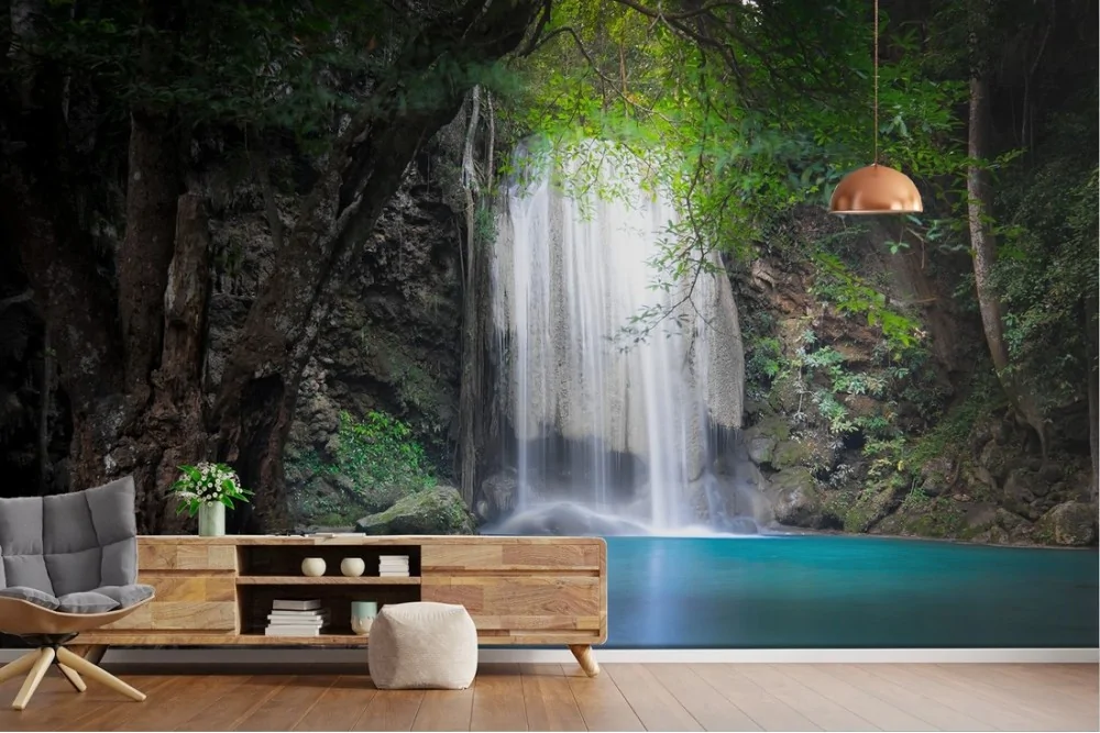 Wallpaper landscape waterfall tropical oasis