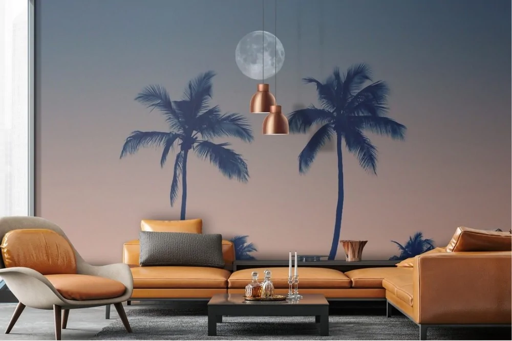 Night sky wallpaper with tropical palms