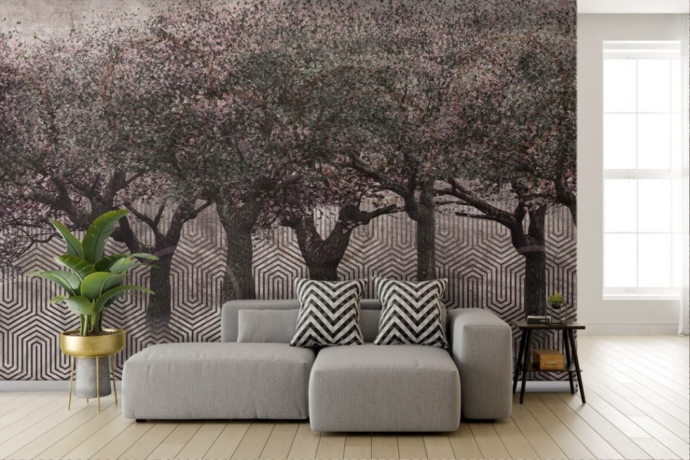 Abstract Wallpaper Cherry Trees and Circles -a129