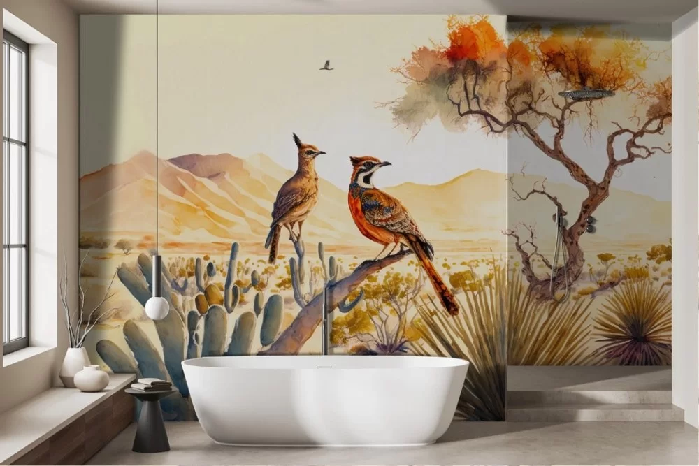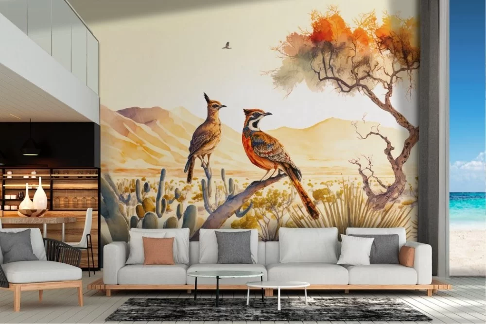 The wallpaper Watercolor Landscape with Birds, is produced exclusively in Italy to guarantee the highest quality and craftsmanship. All our wallpapers can be customised for FREE in style and colors to better suit your environments and your needs. Our designers will also create a simulation of the new wallpaper in your environments to see the graphic effect in advance. The paper is then printed to measure in very high resolution. All our wallpapers do not contain solvents or dangerous chemicals. We have a wide range of finishes including CLASSIC SMOOTH, CANVAS TELA, ADHESIVE or FIBERGLASS (discover the features in the wallpaper type section). The modern wallpaper is perfect for adding a touch of style to your rooms, while the vintage wallpaper is ideal for those who love the 70s style. If you are looking for a 3D effect, we recommend the 3D wallpaper. Our product is suitable for every room in the house, from the bedroom wallpaper to the living room or children's room. We offer elegant and refined wallpapers, if instead you prefer a more natural style you can choose from our wallpapers with flowers, trees and forest. For bathrooms and humid environments, we recommend the fiberglass wallpaper, while to cover furniture or tiles, you can use our adhesive wallpaper. We are proud to be one of the best wallpaper brands on the market and to guarantee a high quality and certified product. (# Bedroom wallpaper, Living room wallpaper, refined, modern, designer, best wallpaper, vintage wallpaper, 70s wallpaper)