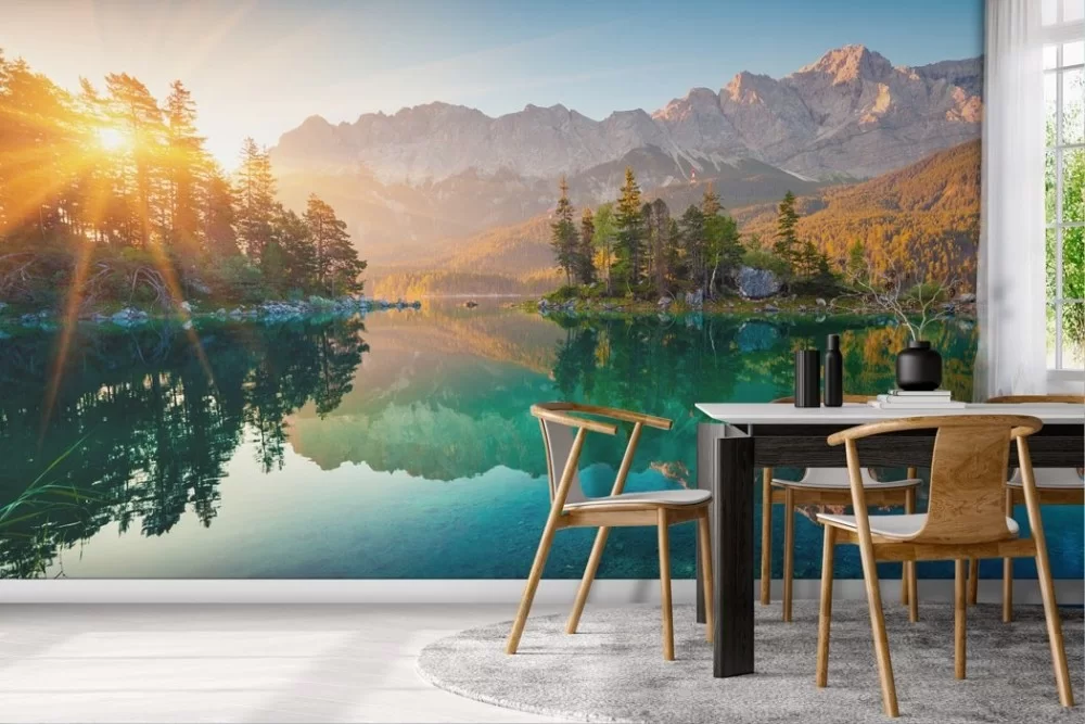 The wallpaper Landscape Lake with Reflecting Mountains, is produced exclusively in Italy to ensure the highest quality and craftsmanship. All our wallpapers can be customized FREE of charge in style and colors to better adapt to your environments and your needs. Our designers will also create a simulation of the new wallpaper in your environments to see the graphic effect obtained in advance. The wallpaper is then printed to measure in very high resolution. All our wallpapers do not contain solvents or dangerous chemical substances. We have a wide range of finishes including CLASSIC SMOOTH, CANVAS FABRIC, ADHESIVE or GLASS FIBER (discover the characteristics in the wallpaper type section). The wallpaper modern wallpaper is perfect for adding a touch of style to your environments, while the wallpaper vintage wallpaper is ideal for those who love the 70's style. If you are looking for a three-dimensional effect, we recommend the wallpaper 3D wallpaper. Our product is suitable for every room in the house, from the wallpaper for bedroom to the living room or children's room. We propose refined and elegant wallpapers, if you prefer a more natural style instead you can choose from our wallpapers with flowers, trees and forest. For bathrooms and humid environments, we recommend the wallpaper in fiberglass, while to cover furniture or tiles, you can use our wallpaper adhesive. We are proud to be one of the best wallpaper wallpaper brands on the market and to guarantee a high quality and certified product. (# Bedroom wallpaper, Living room wall papers, refined, modern, design, best wallpaper, wallpaper vintage, wallpaper 70s )