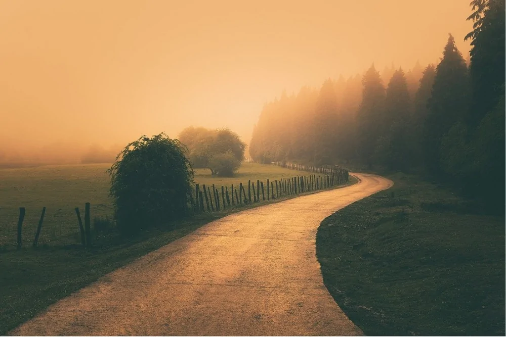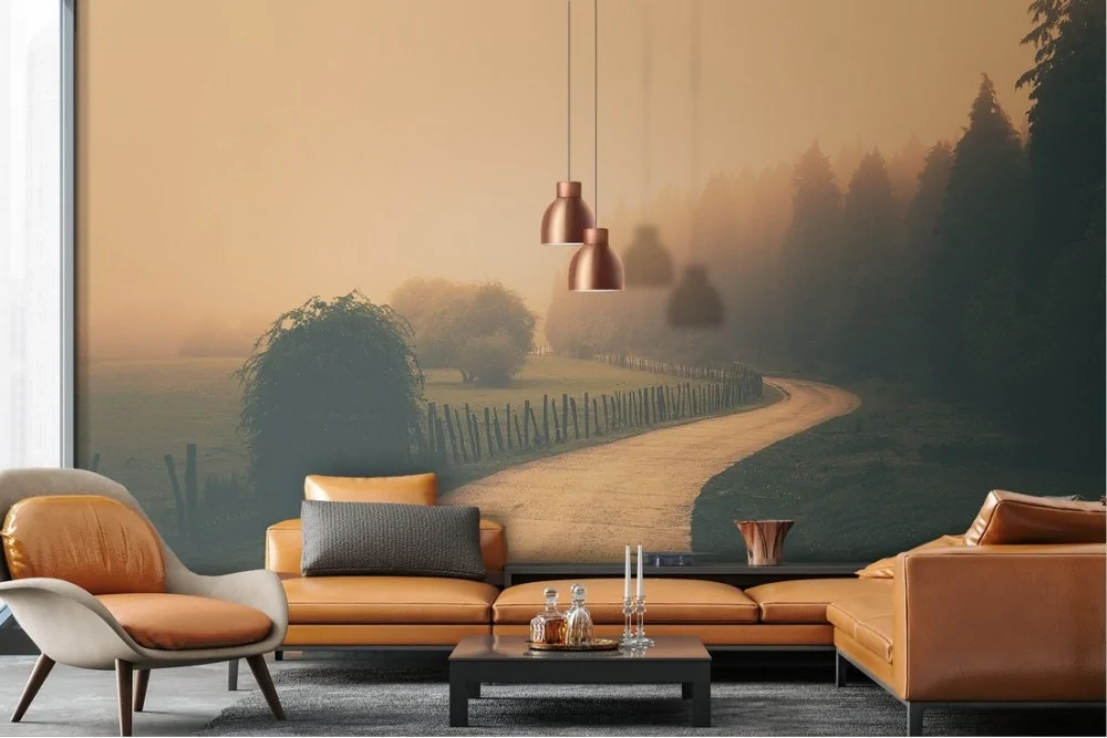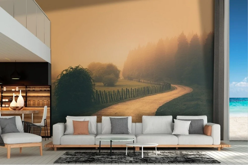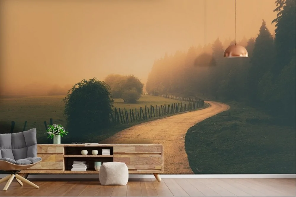 Wallpaper road in the forest landscape