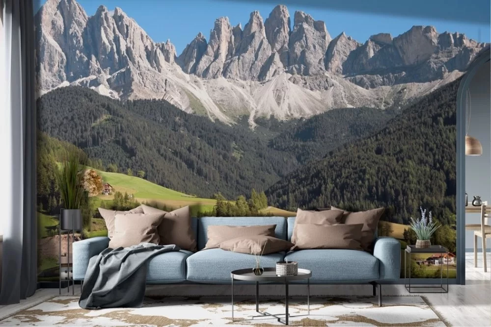 The wallpaper alpine mountain landscape wallpaper, is produced exclusively in Italy to ensure the highest quality and craftsmanship. All our wallpapers can be customized FREE in style and colors to better suit your rooms and your needs. Our designers will also create a simulation of the new wallpaper in your rooms to see in advance the graphic effect obtained. Subsequently, the wallpaper is printed to measure in very high resolution. All our wallpapers do not contain solvents or dangerous chemicals. We have a wide range of finishes including CLASSIC SMOOTH, CANVAS CANVAS, ADHESIVE or GLASS FIBER (discover the features in the type of cards section). The modern wallpaper is perfect for adding a touch of style to your rooms, while the vintage wallpaper is ideal for those who love the 70s style. If you are looking for a three-dimensional effect instead, we recommend the 3D wallpaper. Our product is suitable for every room in the house, from the bedroom wallpaper to the living room or children's room. We offer refined and elegant wallpapers, if instead you prefer a more natural style you can choose from our wallpapers with flowers, trees and forest. For bathrooms and humid environments, we recommend the fiberglass wallpaper, while to cover furniture or tiles, you can use our adhesive wallpaper. We are proud to be one of the best wallpaper brands on the market and to guarantee a high quality and certified product. (# Bedroom Wallpaper, Living Room Wallpapers, refined, modern, design, best wallpaper, vintage wallpaper, 70s wallpaper)
