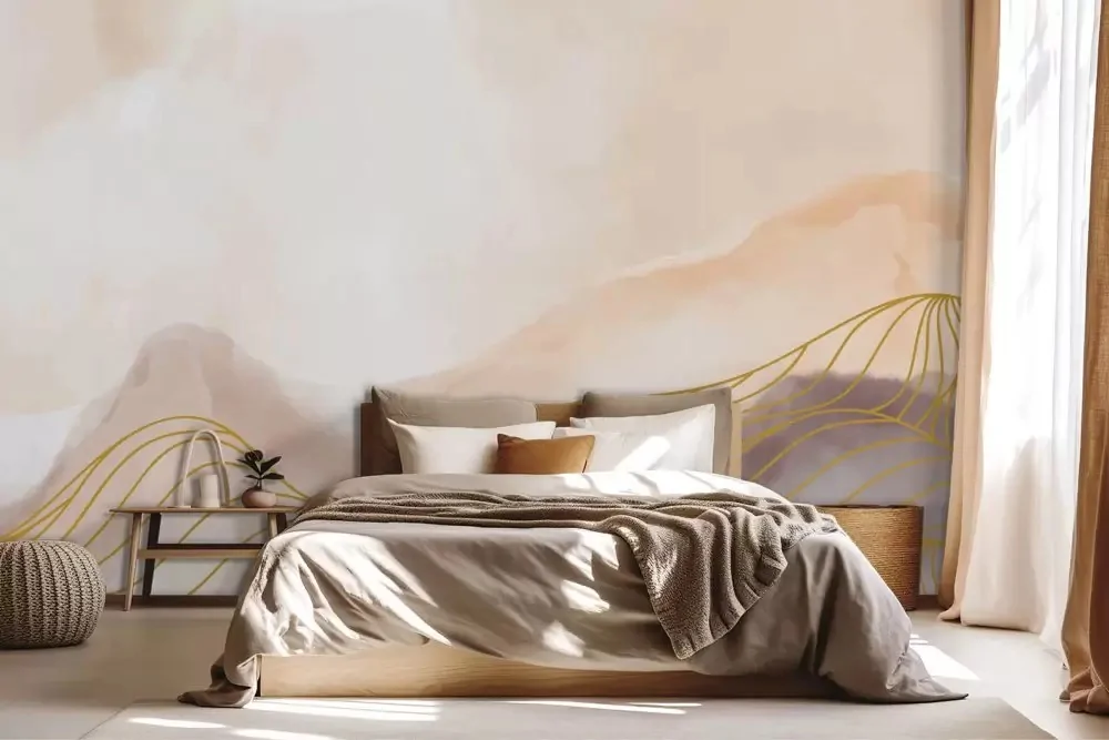 La carta da parati montagna stilizzata oro e tonalità pastello rappresenta un paesaggio delicato e luminoso. Le linee dorate e le sfumature chiare creano un effetto rilassante e sofisticato, ideale per camere, salotti e spazi open space. È una carta da parati paesaggio moderno che coniuga arte e equilibrio cromatico. Le forme fluide trasmettono calma e continuità visiva, perfette per chi ama interni armoniosi e contemporanei. Una decorazione poetica e versatile per chi desidera un tocco naturale ed elegante. |