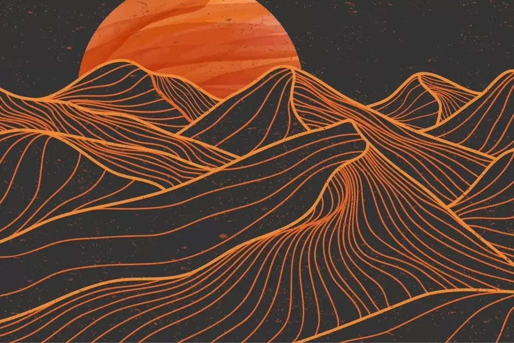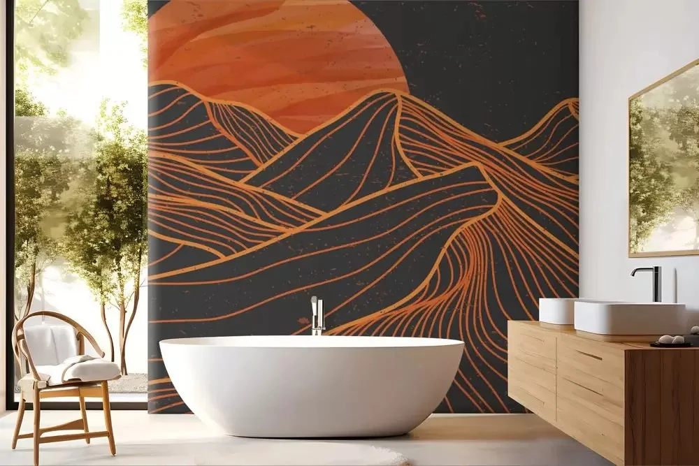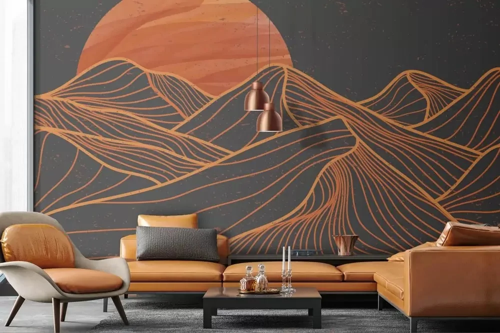 Carta da parati montagne deserto stilizzate, scenografica e di carattere. Ideale per ambienti moderni. Personalizzabile su misura.
