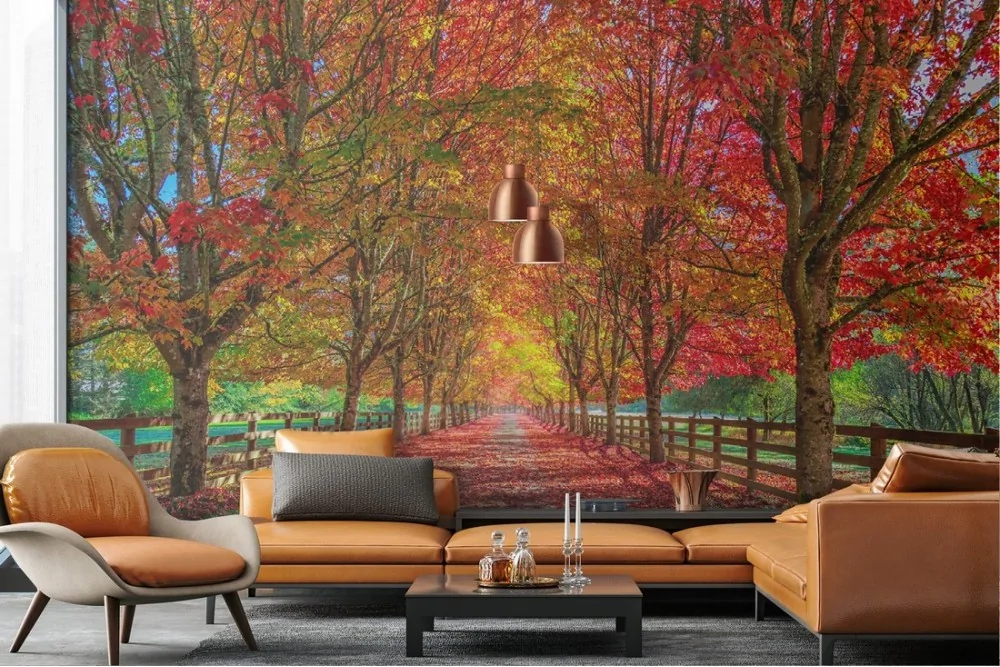 Wallpaper landscape forest tree-lined avenue autumn