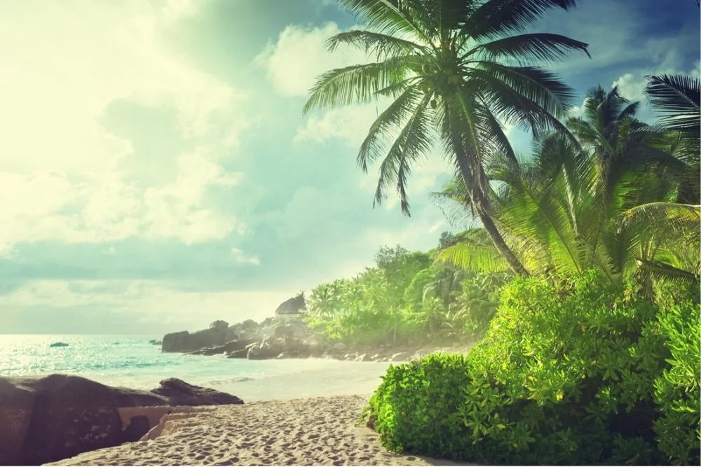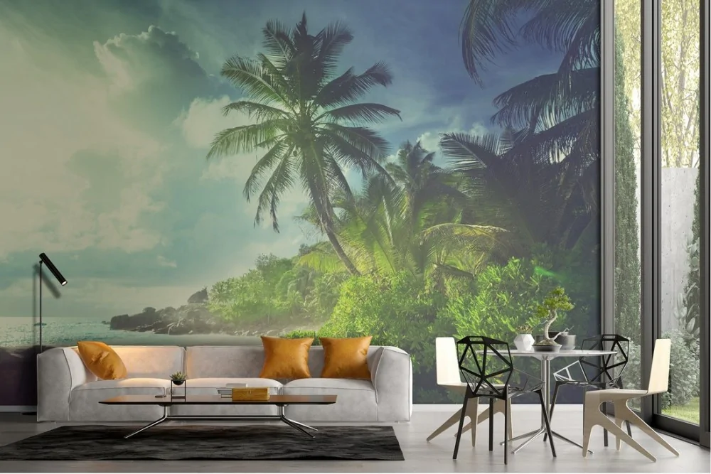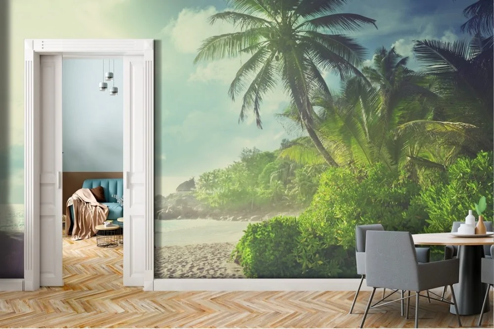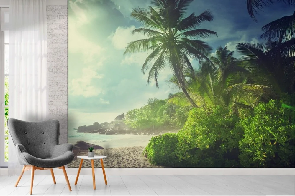Wallpaper beach with tropical forest landscape