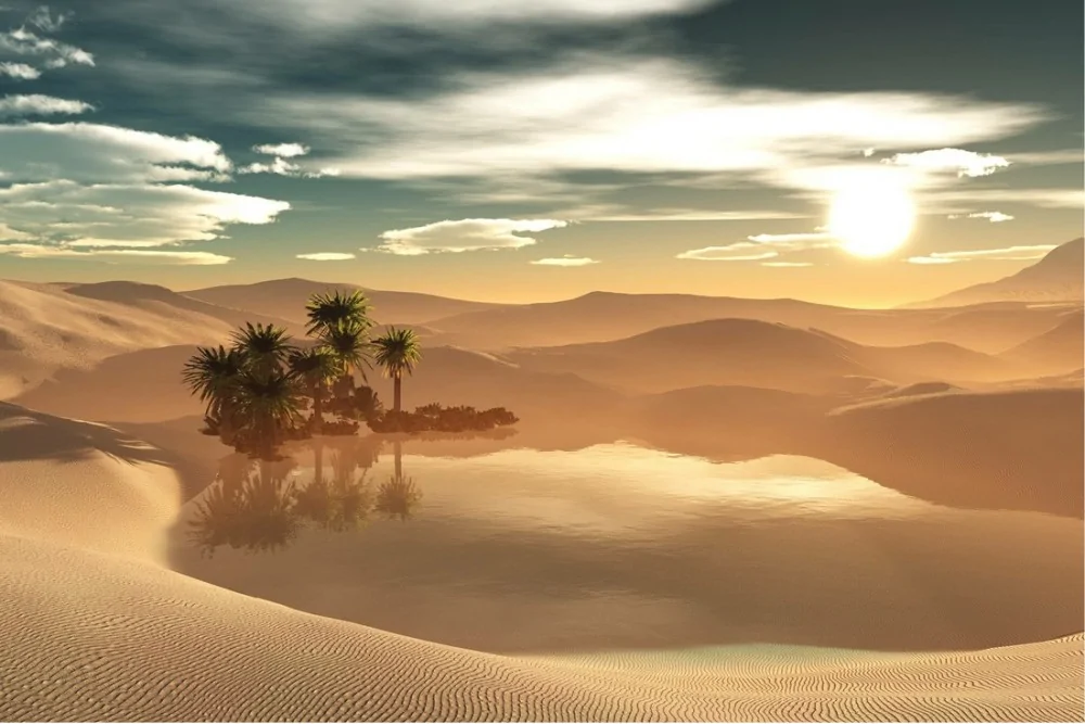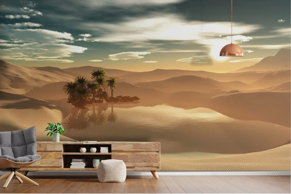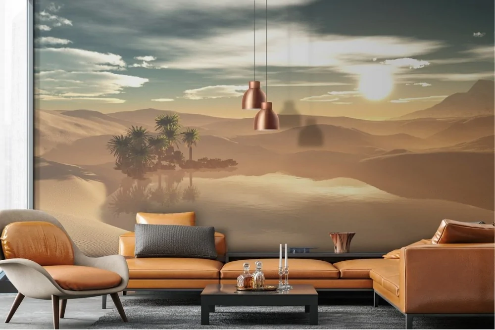 Desert oasis landscape wallpaper