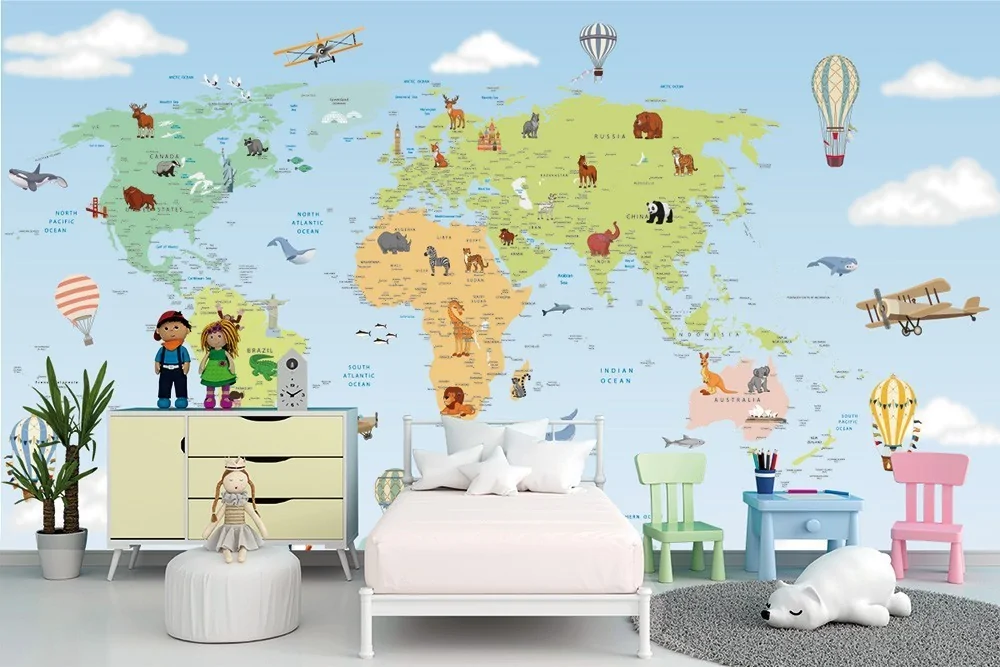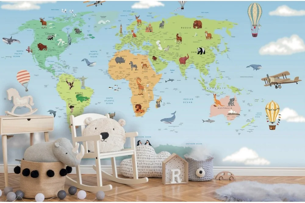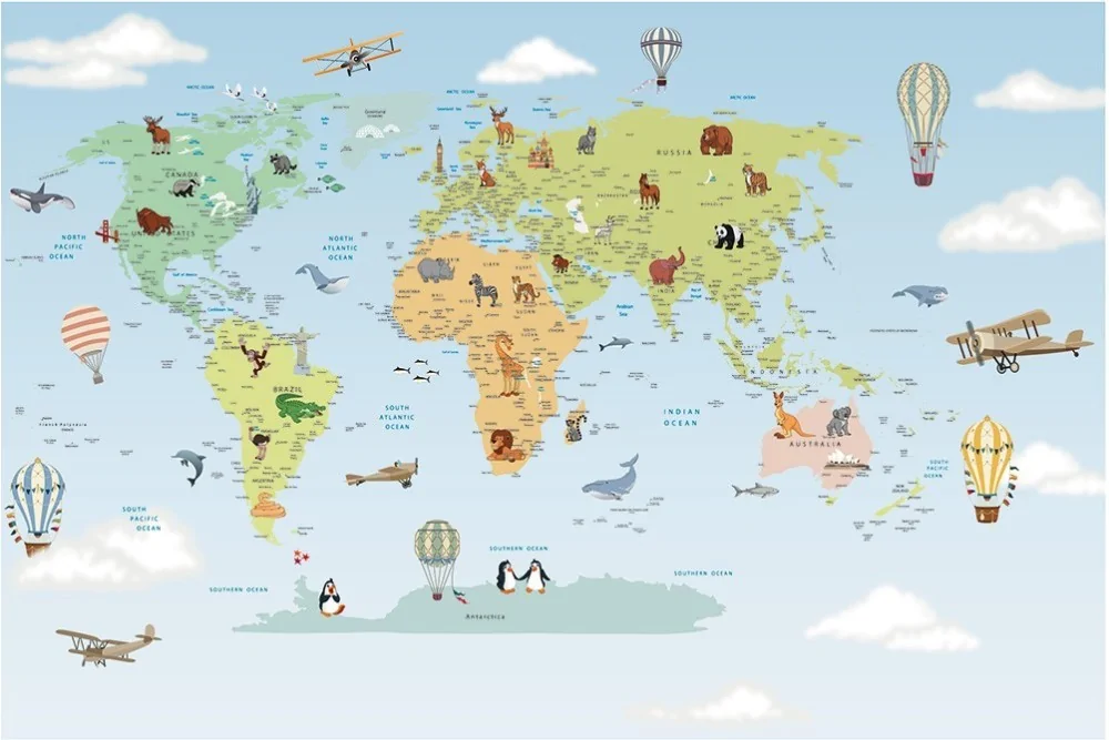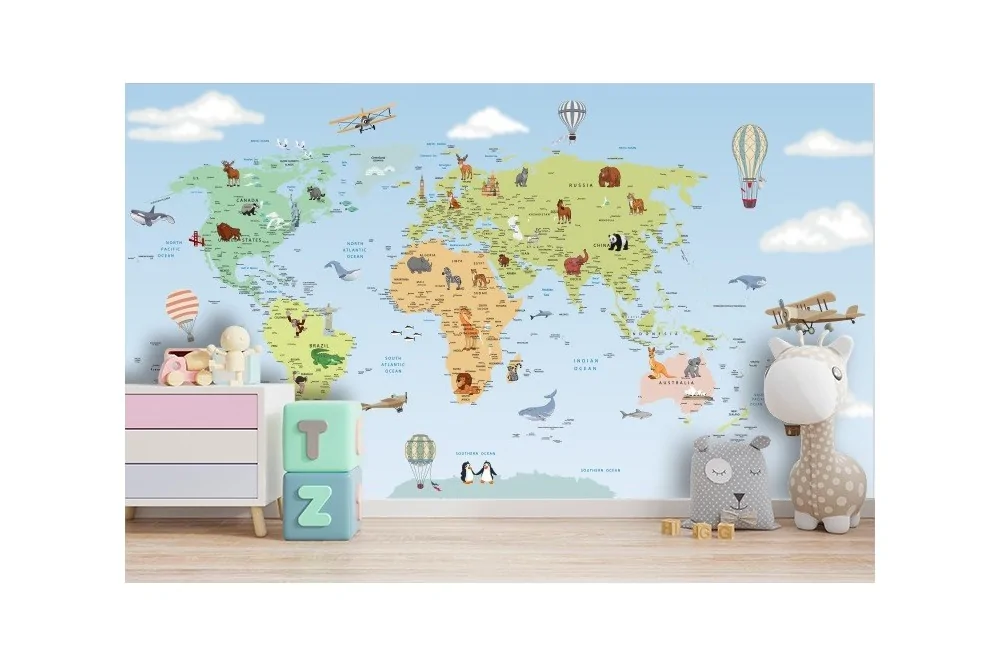 Wallpaper world map animal design