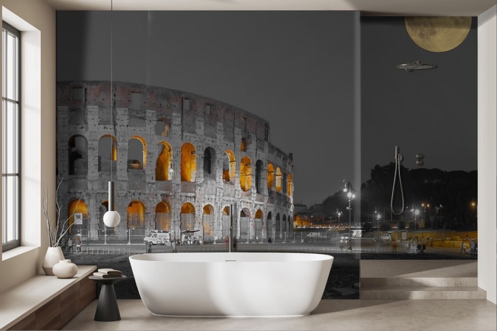 The wallpaper night-time Rome Colosseum moon, is produced exclusively in Italy to ensure maximum quality and craftsmanship. All our wallpapers can be customized FREE of charge in style and colors to better suit your environments and your needs. Our designers will also create a simulation of the new wallpaper in your environments to see the graphic effect in advance. Subsequently, the paper is printed to measure in very high resolution. All our wallpapers do not contain solvents or hazardous chemicals. We have a wide range of finishes including CLASSIC SMOOTH, CANVAS TELA, ADHESIVE or FIBERGLASS (discover the features in the type of paper section). The wallpaper modern is perfect for adding a touch of style to your environments, while the wallpaper vintage is ideal for those who love the 70s style. If you are looking for a three-dimensional effect instead, we recommend the wallpaper 3D. Our product is suitable for every room in the house, from the wallpaper for the bedroom to the living room or children's room. We offer refined and elegant wallpapers, if instead you prefer a more natural style you can choose from our wallpapers with flowers, trees and forest. For bathrooms and humid environments, we recommend the wallpaper in fiberglass, while to cover furniture or tiles, you can use our wallpaper adhesive. We are proud to be one of the best wallpaper brands on the market and to guarantee a high quality and certified product. (# Bedroom wallpaper, Living room wallpapers, refined, modern, design, best wallpaper, wallpaper vintage, wallpaper 70s )