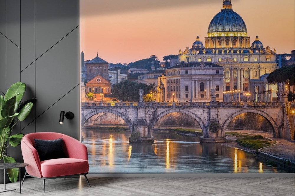 The wallpaper Roma San Pietro at sunset, is produced exclusively in Italy to guarantee the highest quality and craftsmanship. All our wallpapers can be customized for FREE in style and colors to better suit your rooms and your needs. Our designers will also create a simulation of the new wallpaper in your rooms to see in advance the graphic effect obtained. Subsequently, the wallpaper is printed to measure in very high resolution. All our wallpapers do not contain solvents or dangerous chemicals. We have a wide range of finishes including CLASSIC SMOOTH, CANVAS FABRIC, ADHESIVE or GLASS FIBER (discover the features in the wallpaper type section). The wallpaper modern is perfect for giving a touch of style to your rooms, while the wallpaper vintage is ideal for those who love the 70s style. If you are looking for a three-dimensional effect, we recommend the wallpaper 3D. Our product is suitable for every room of the house, from the wallpaper for the bedroom to the living room or children's room. We offer refined and elegant wallpapers, if instead you prefer a more natural style you can choose from our wallpapers with flowers, trees and woods. For bathrooms and humid environments, we recommend the wallpaper in fiberglass, while to cover furniture or tiles, you can use our wallpaper adhesive. We are proud to be one of the best wallpaper brands on the market and to guarantee a high quality and certified product. (# Carta da parati bedroom, Wallpapers for living room, refined, modern, design, best wallpaper, wallpaper vintage, wallpaper 70s )