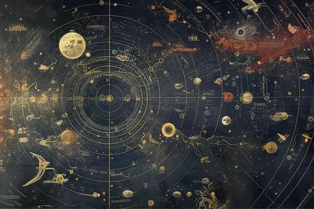 Carta da parati atmosfera cosmica con mappa celeste dorata