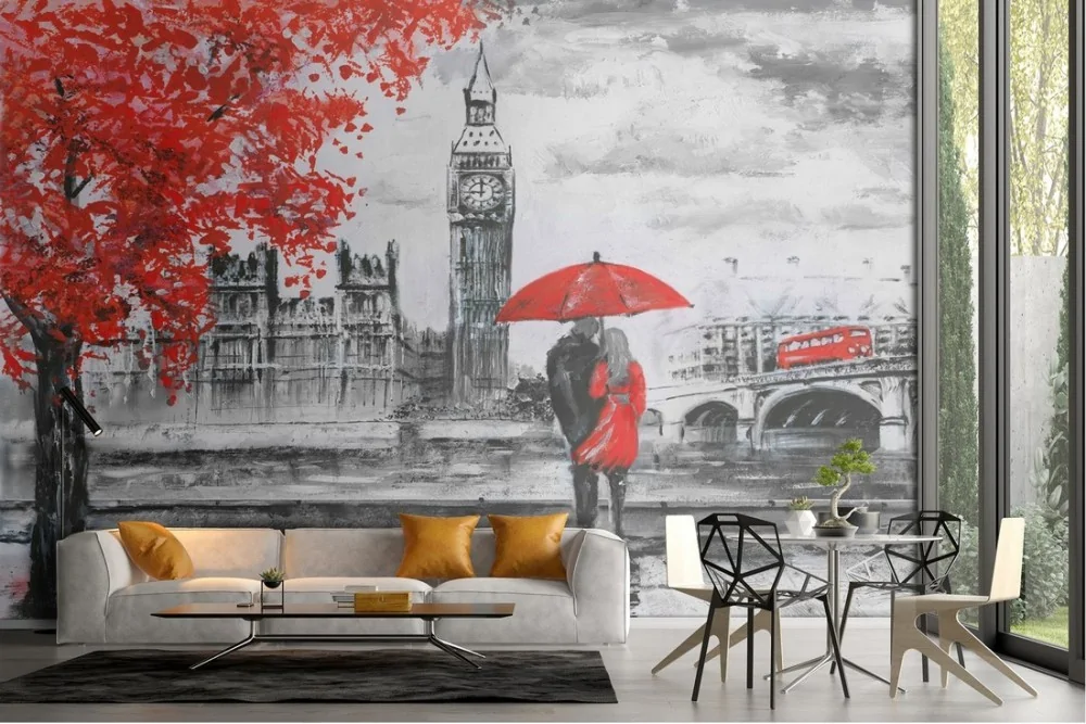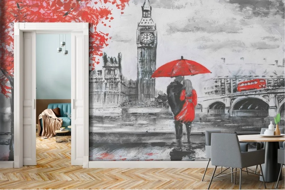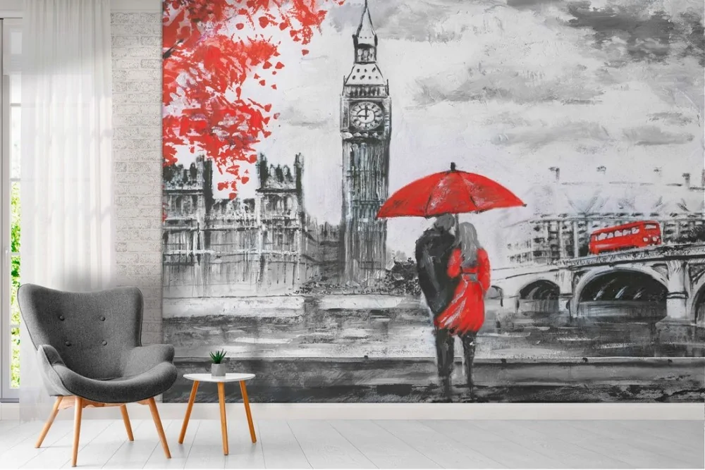 Romantic painted wallpaper London city Big Ben