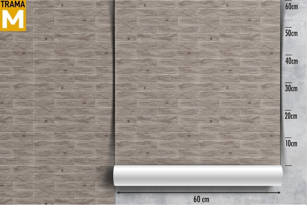 Gray brick effect wallpaper surface.