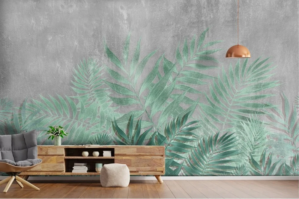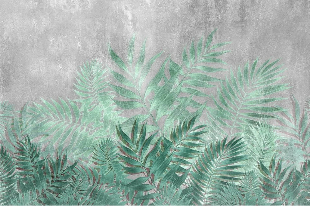 Tropical leaves wallpaper with concrete surface