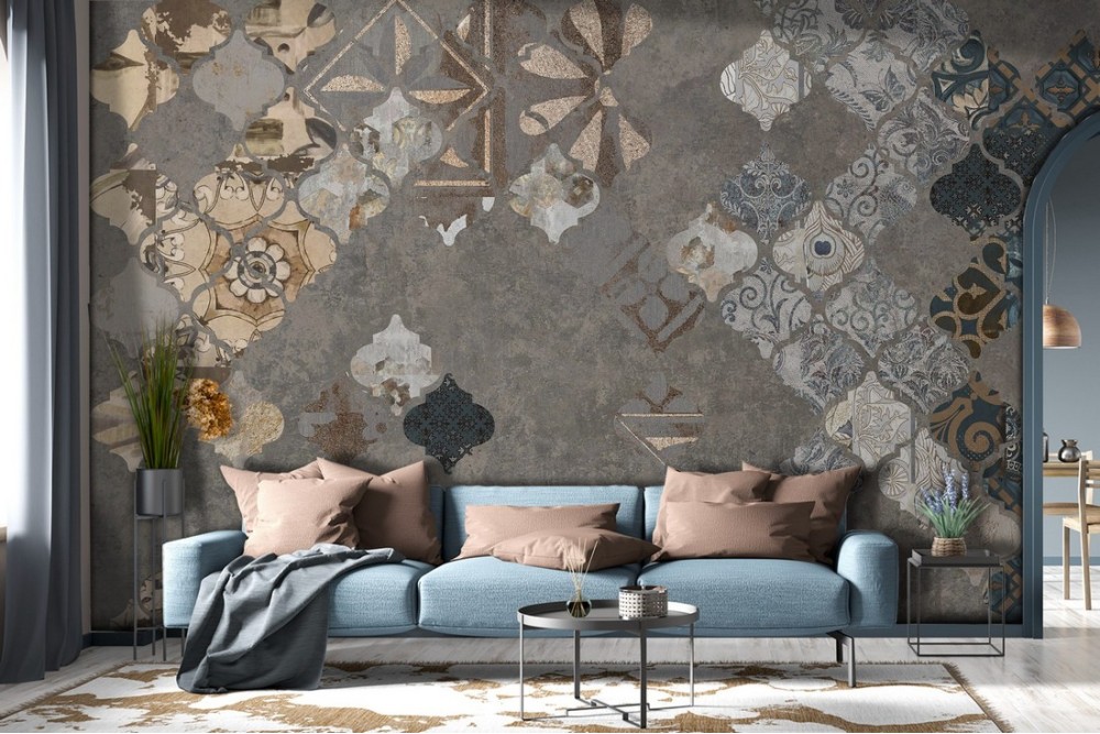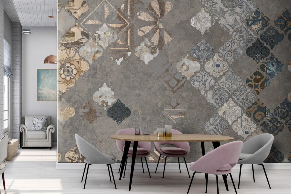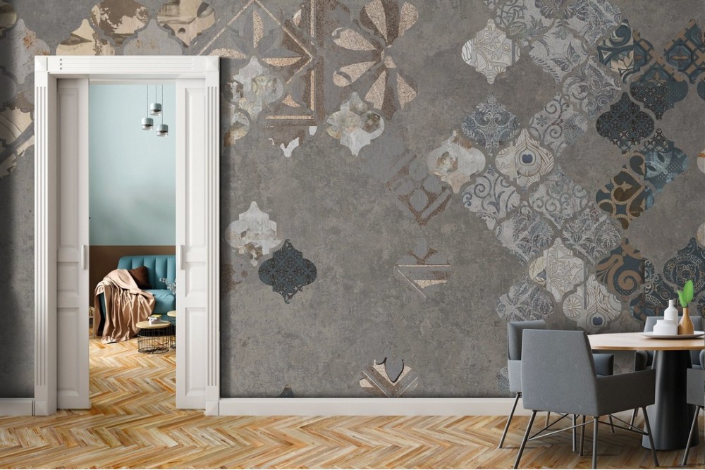 Wallpaper tiles and concrete vintage decoration-0171