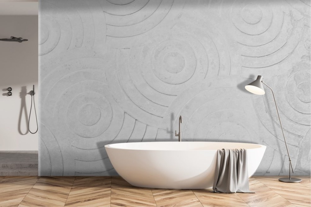 The wallpaper circular troweled concrete, is produced exclusively in Italy to ensure the highest quality and craftsmanship. All our wallpapers can be customized FREE of charge in style and colors to better adapt to your environments and your needs. Our designers will also create a simulation of the new wallpaper in your environments to see in advance the graphic effect obtained. Subsequently, the paper is printed to measure in very high resolution. All our wallpapers do not contain solvents or dangerous chemicals. We have a wide range of finishes including SMOOTH CLASSIC, CANVAS FABRIC, ADHESIVE or FIBERGLASS (discover the characteristics in the wallpaper type section). The modern wallpaper is perfect for giving a touch of style to your environments, while the vintage wallpaper is ideal for those who love the 70s style. If you are looking for a three-dimensional effect instead, we recommend the 3D wallpaper. Our product is suitable for every room in the house, from the bedroom wallpaper to the living room or children's room. We offer refined and elegant wallpapers, if instead you prefer a more natural style you can choose from our wallpapers with flowers, trees and forest. For bathrooms and humid environments, we recommend the fiberglass wallpaper, while to cover furniture or tiles, you can use our adhesive wallpaper. We are proud to be one of the best wallpaper brands on the market and to guarantee a high quality and certified product. (# Bedroom wallpaper, Living room wallpapers, refined, modern, design, best wallpaper, vintage wallpaper, 70s wallpaper)