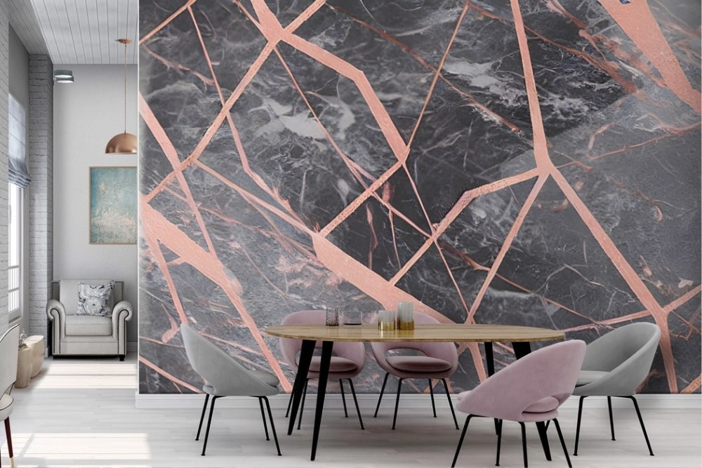 Black marble effect wallpaper with pink finishes -a305