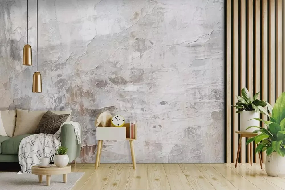 Carta da parati effetto cemento grezzo, sofisticata e chic. Ideale per loft e ambienti industrial. Realizzata con materiali sostenibili.