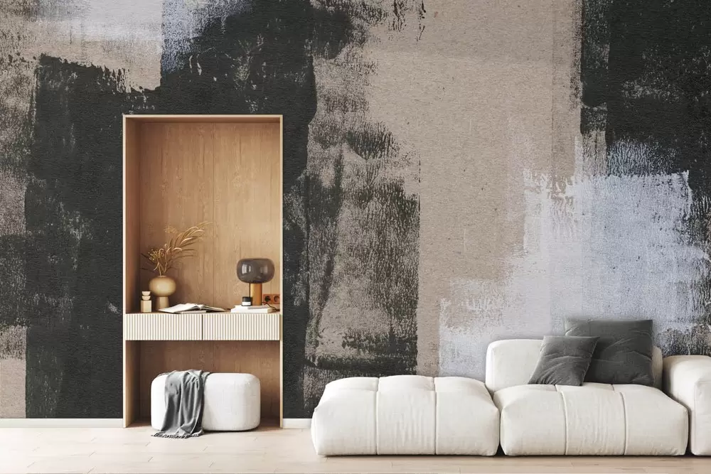 Carta da parati pennellate effetto cartone, scenografica e di carattere. Ideale per ambienti moderni. Personalizzabile su misura.