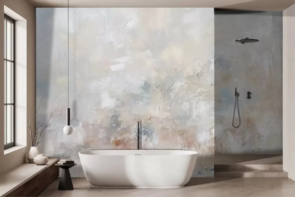 La carta da parati effetto intonaco colori pastello restituisce un look calce-spatolato in toni cipria, crema e salvia. Questa carta da parati intonaco uniforma la parete e aggiunge materia soft; come carta da parati murale effetto intonaco è ideale per living minimal, corridoi e camere. La carta da parati moderna funge da base elegante per arredi essenziali, mentre la carta da parati decorativa crea continuità cromatica e luce diffusa in interni contemporanei. |