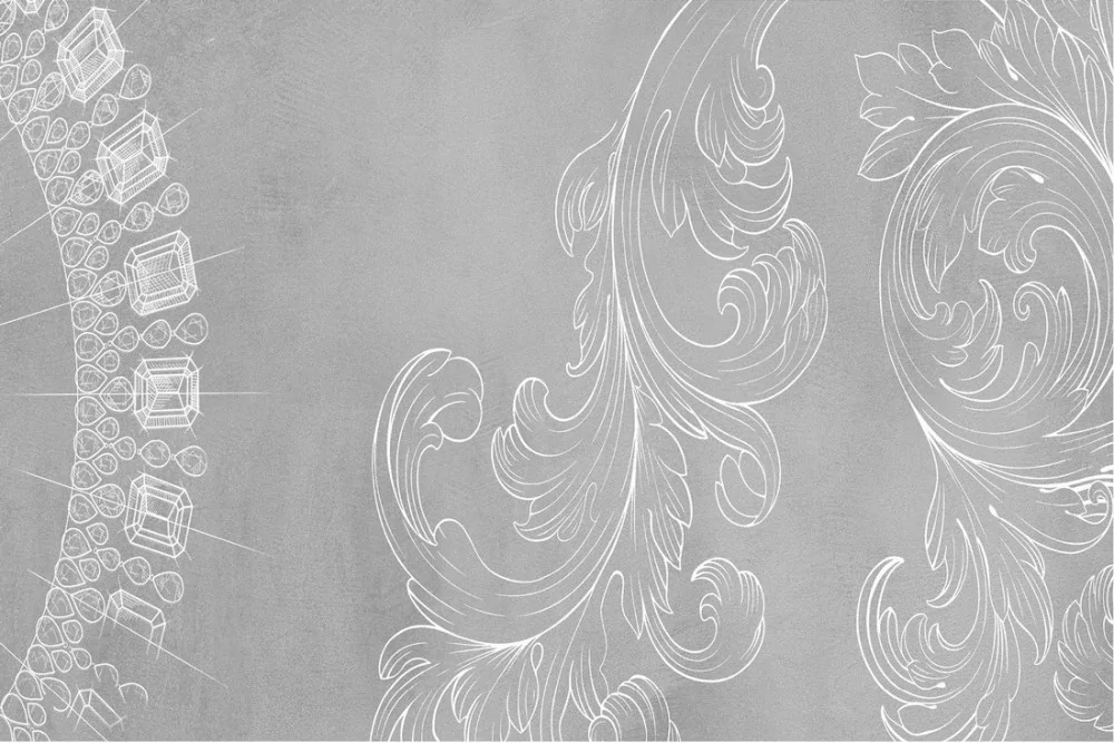 Wallpaper with concrete surface and vintage flower decorations