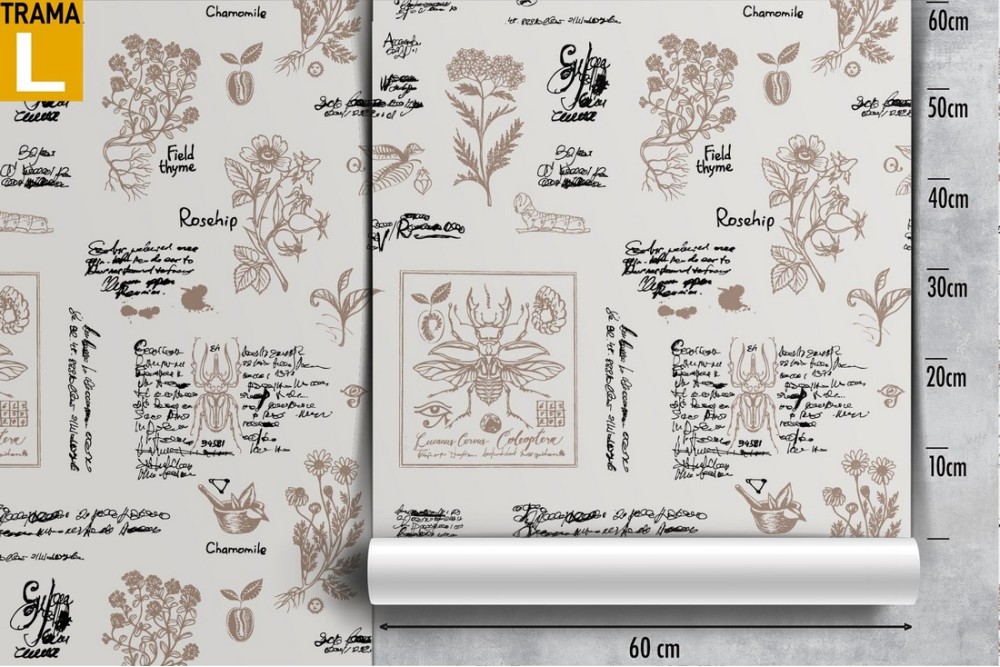 Carta da Parati scritte vintage design anatomia fiori.