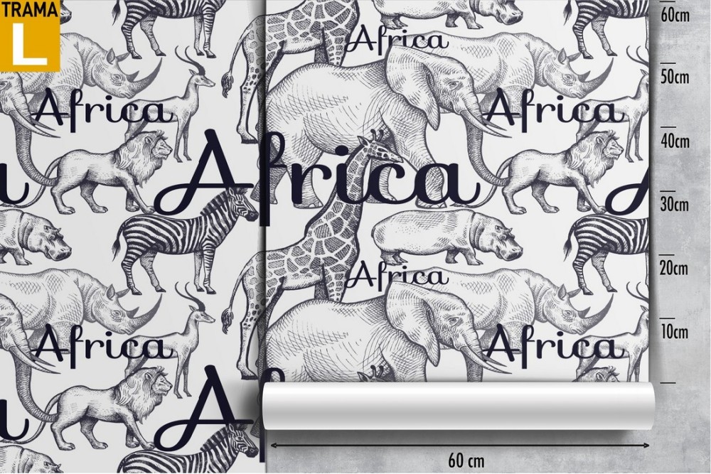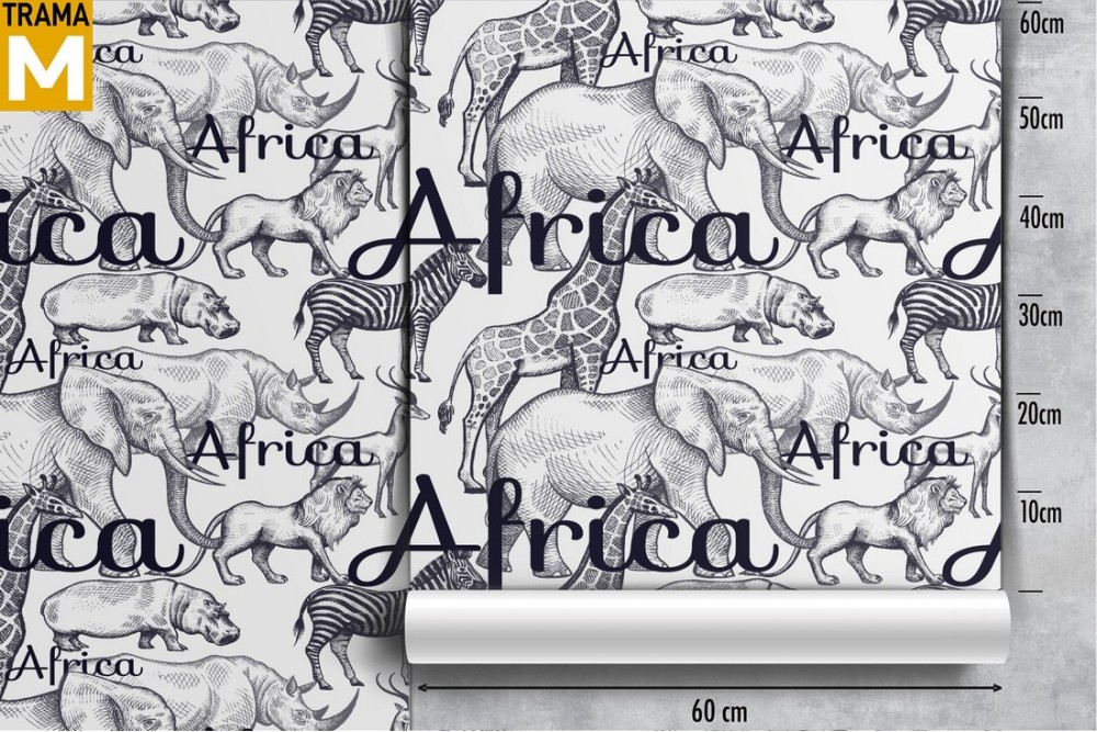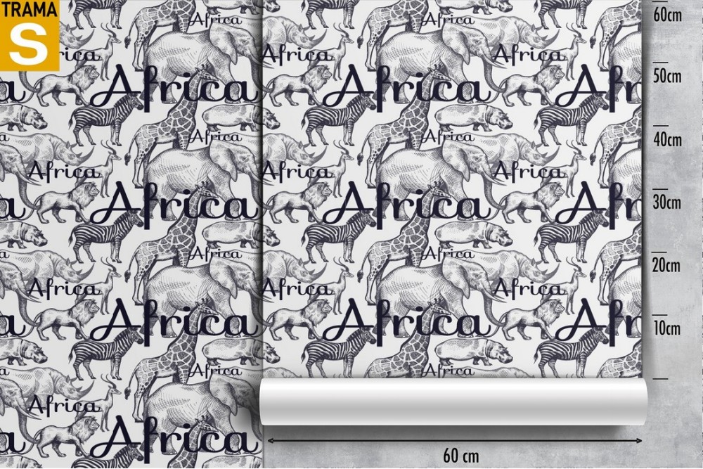 Carta da Parati scritte e animali Africa natura pattern.