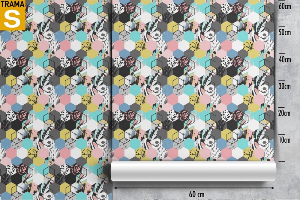 Carta da Parati decorazione geometrica moderna cubi esagoni.