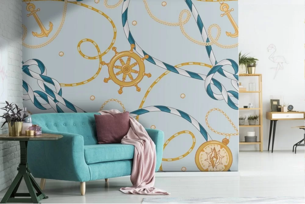 Carta da Parati corde e decorazioni navi pattern moderno.