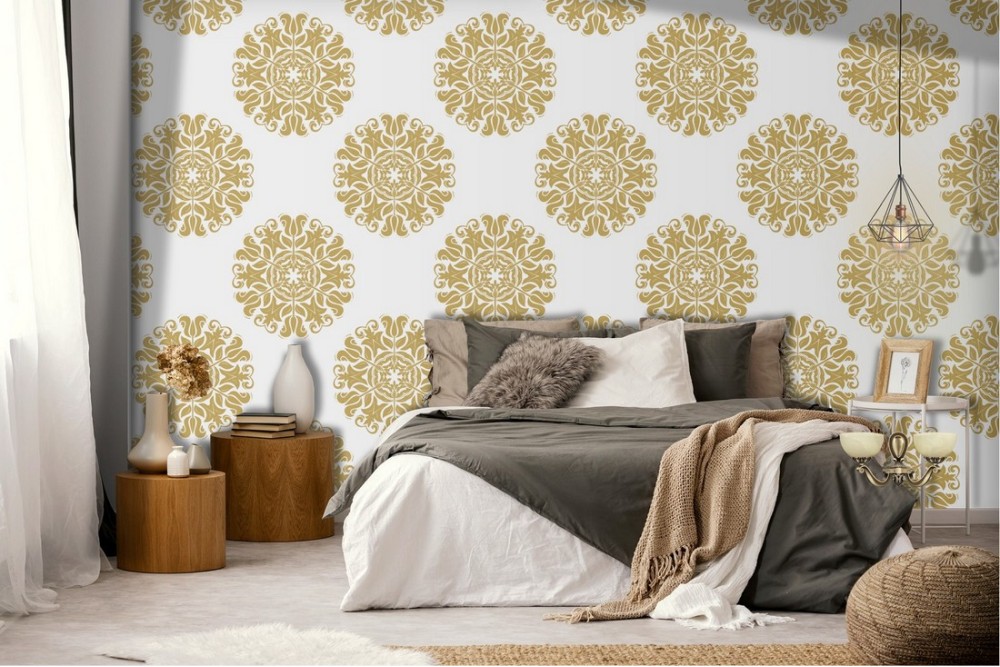 Carta da Parati decorazione oro geometrica vintage.