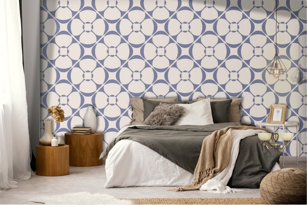 Carta da Parati decorazione fiori geometrici stilizzati.