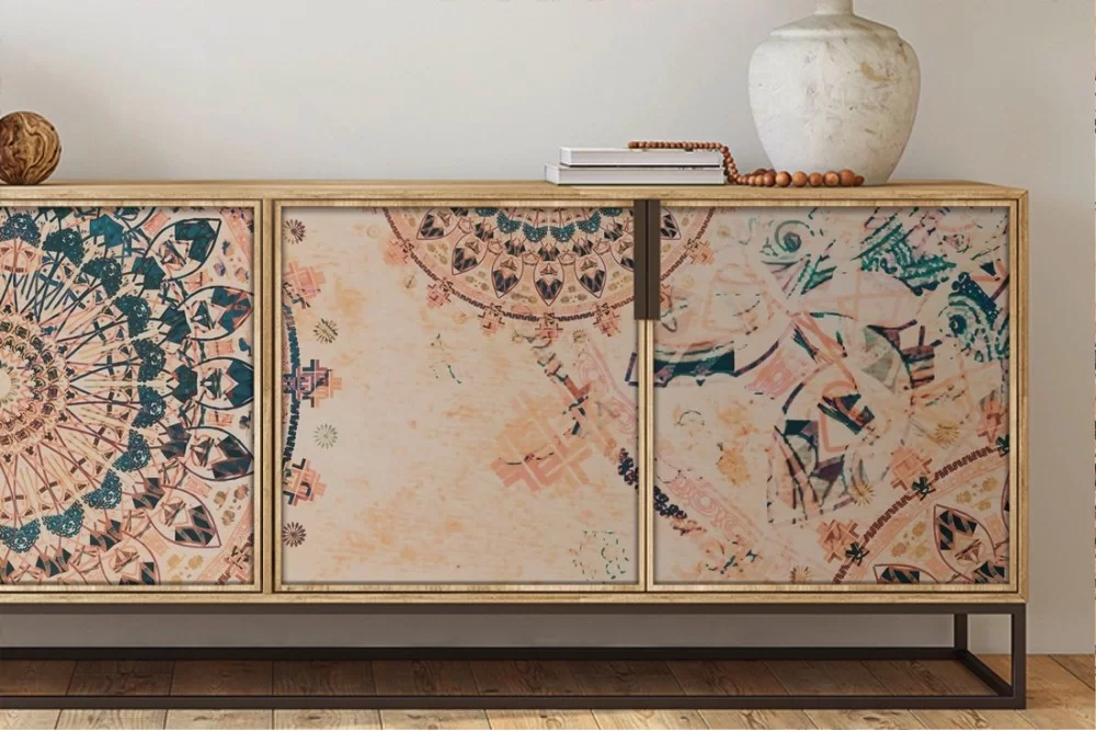 Carta da Parati mandala arancione orientale design-0157