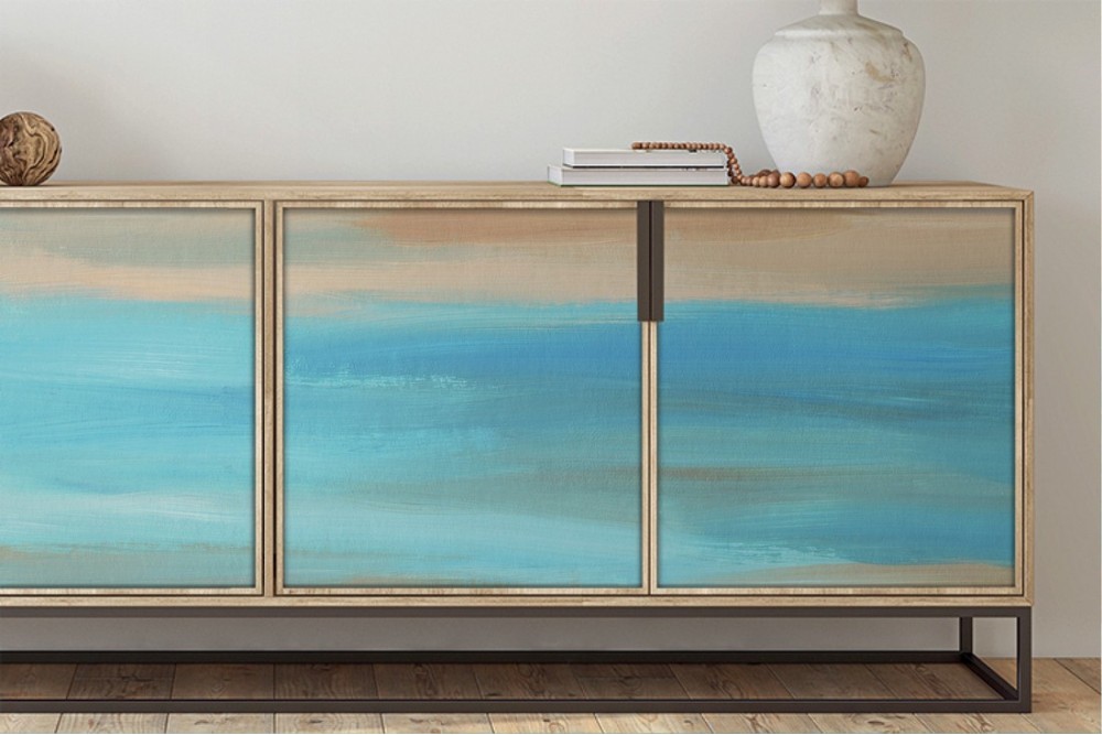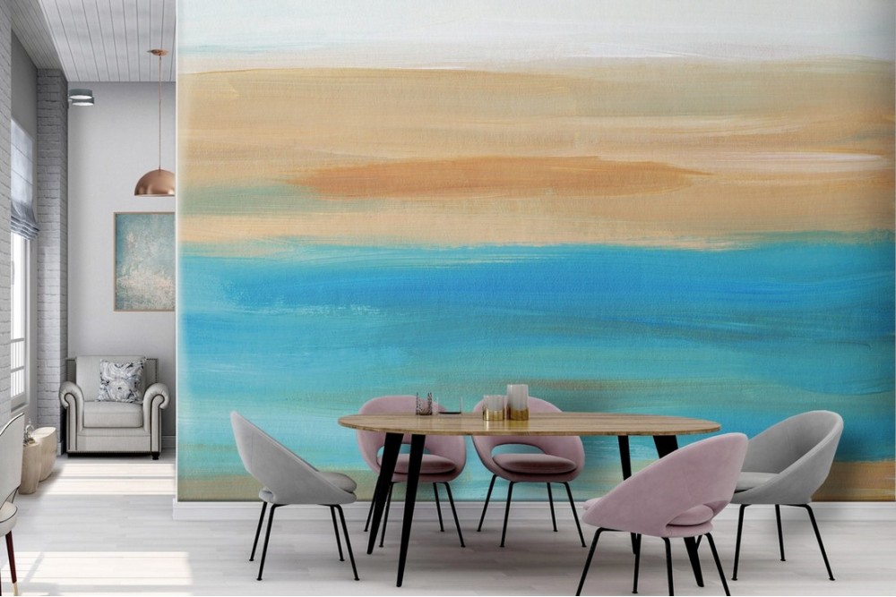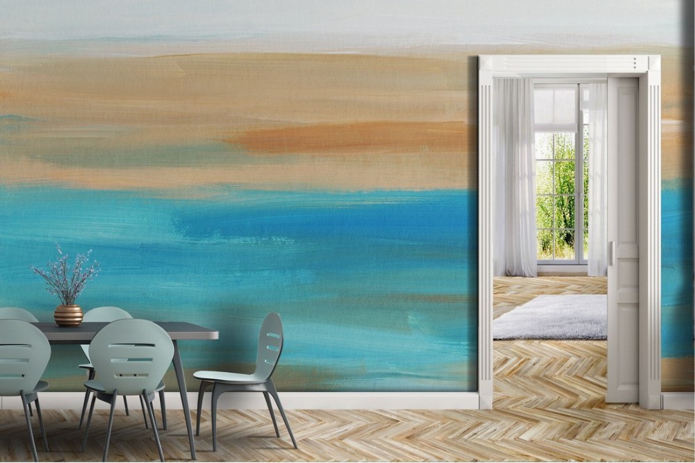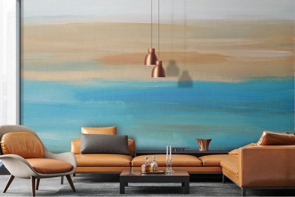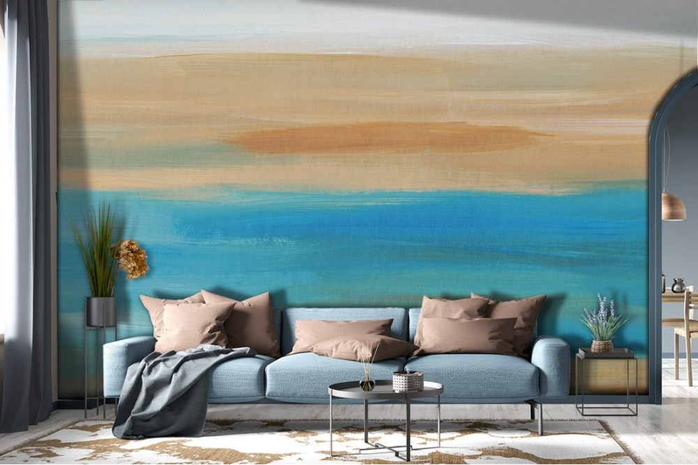 Carta da Parati azzurro e sabbia dipinto moderno-0167