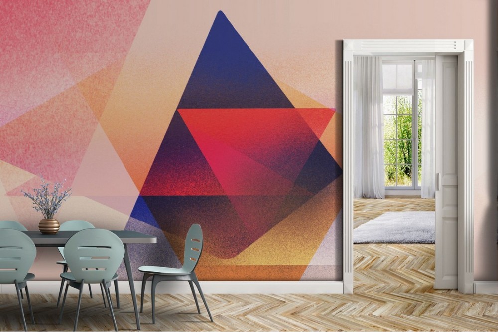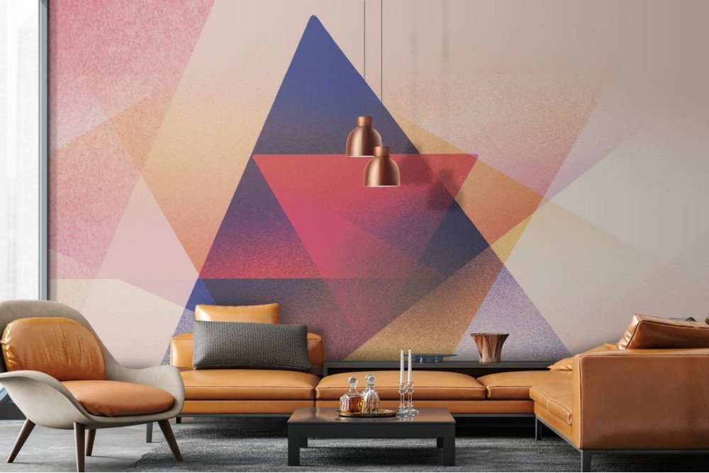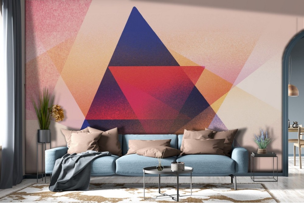 Carta da Parati decorazione geometrica tonalità rosa triangoli-0349