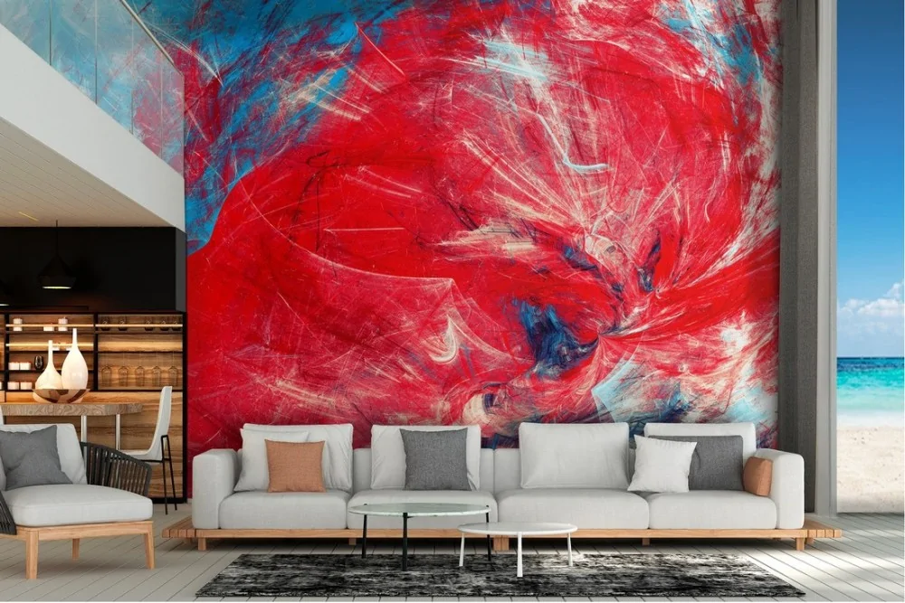 Carta da Parati dipinto astratto colori rosso azzurro