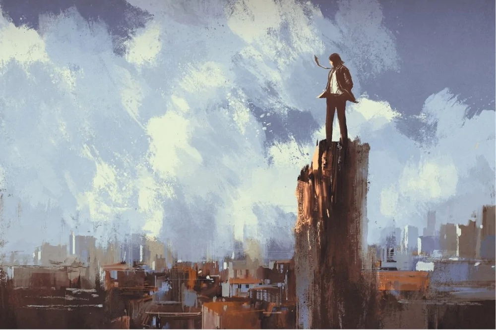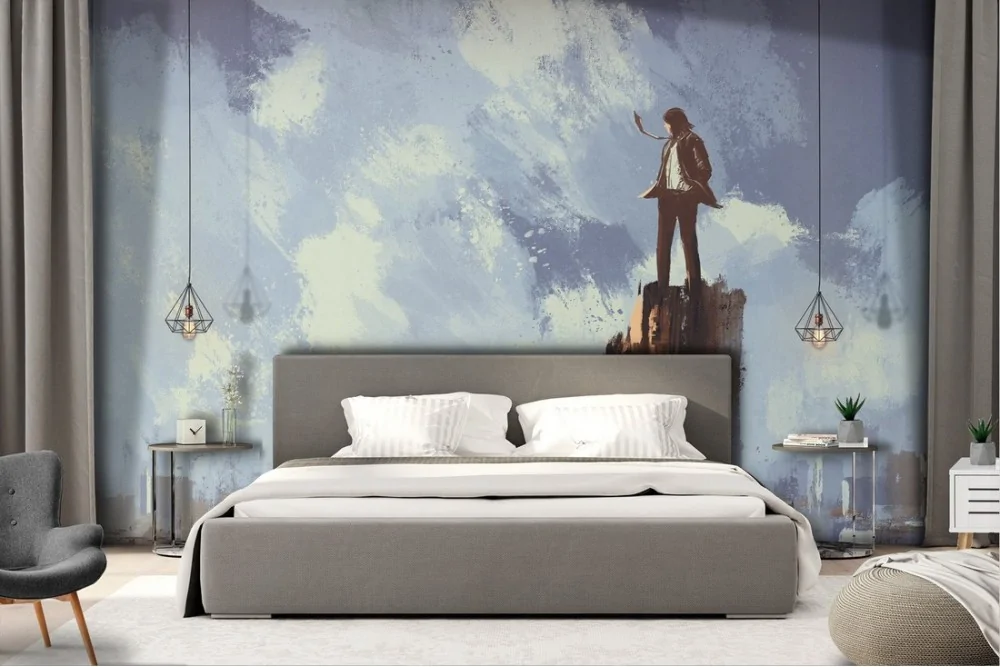Carta da Parati uomo osserva città dipinto arte contemporanea