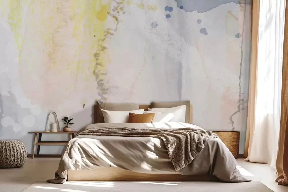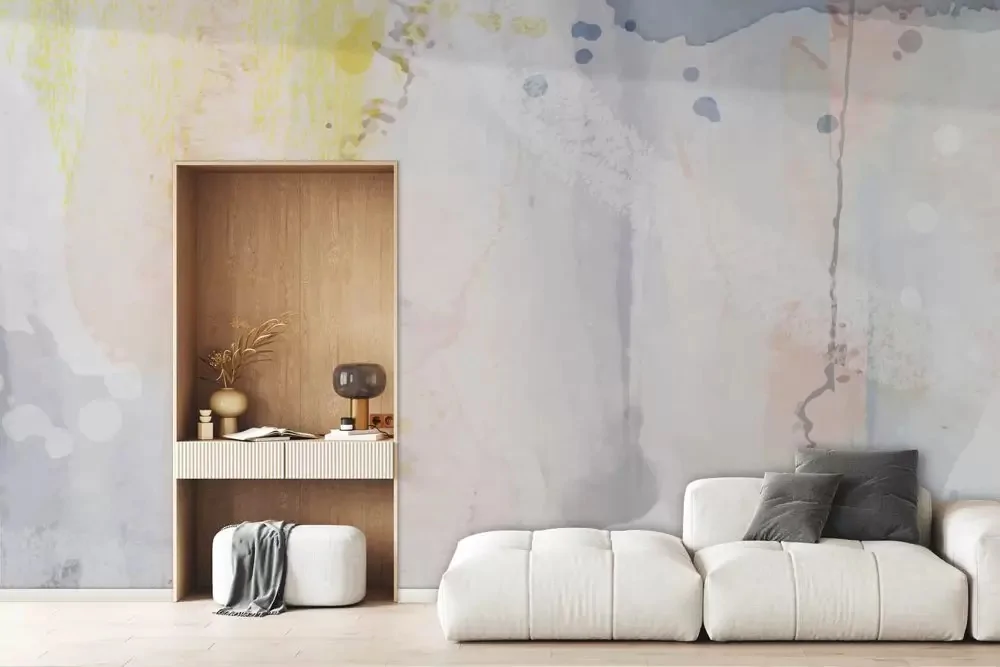 Carta da parati Aquarello pastello, calda e accogliente. Ideale per ambienti moderni. Artigianale italiana.