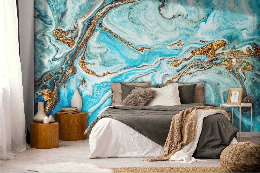 Carta da Parati colore astratto azzurro e oro glamour