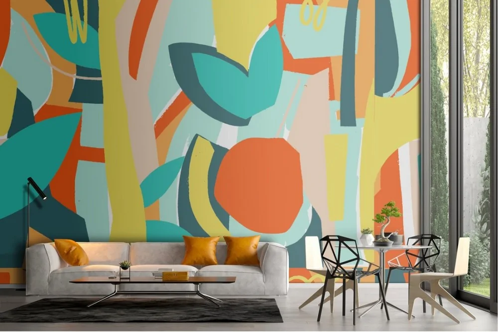 Carta da Parati natura astratta foglie e alberi