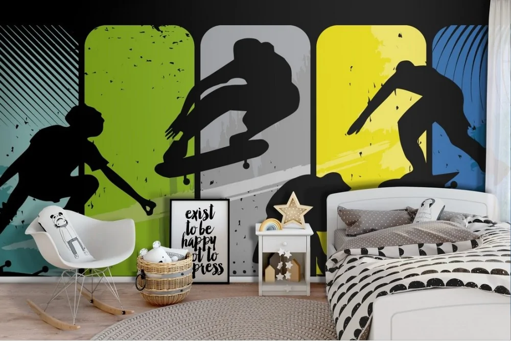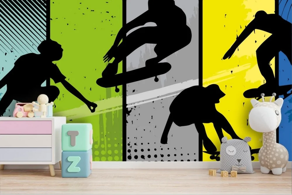 Carta da Parati ragazzi in skateboard stilizzati