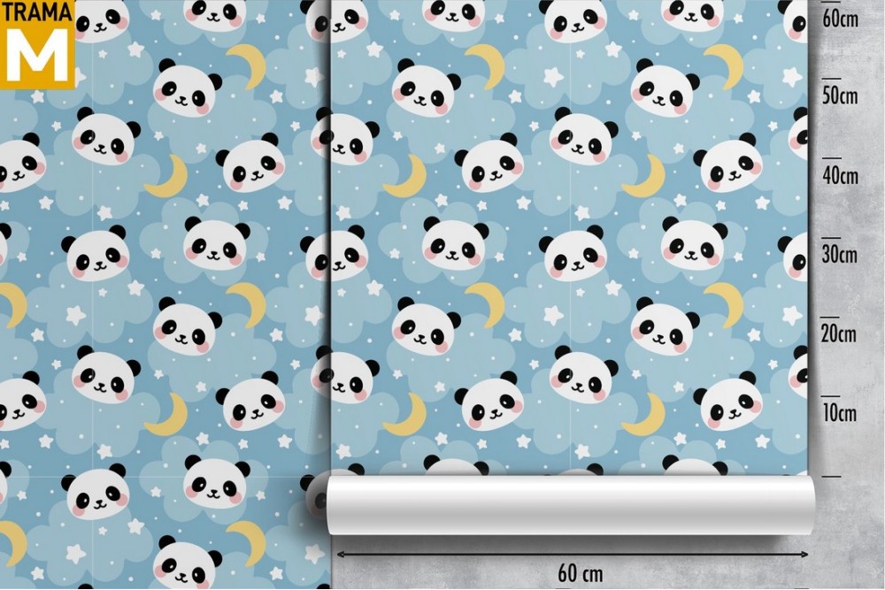 Carta da Parati decorazione panda e lune bambini.