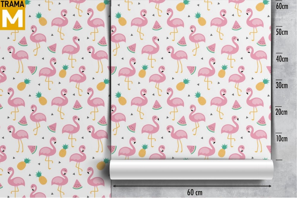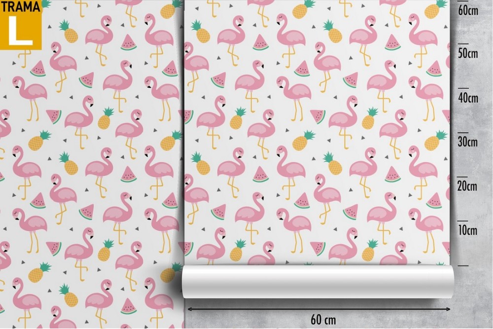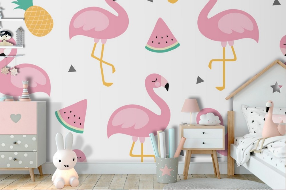 Carta da Parati bambini decorazione fenicotteri rosa.