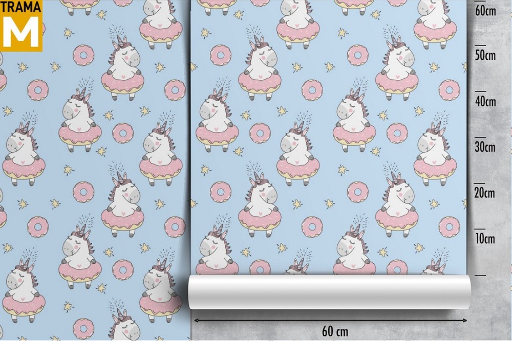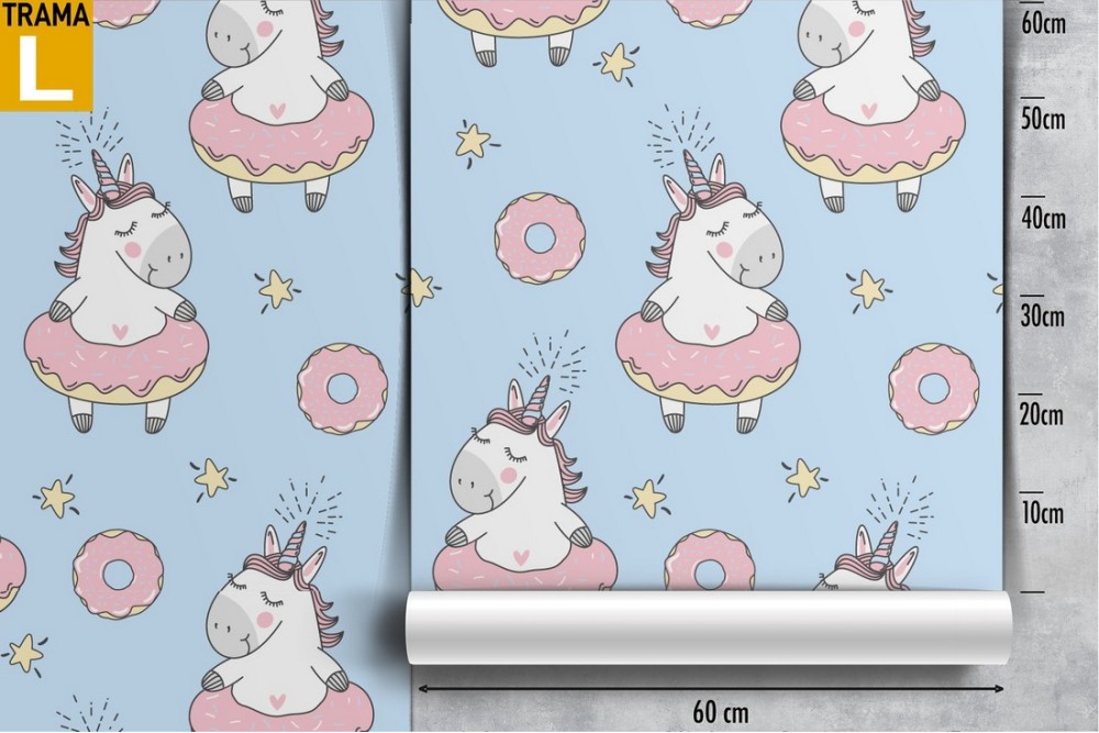 Carta da Parati unicorno con ciambella fantasy bambini.