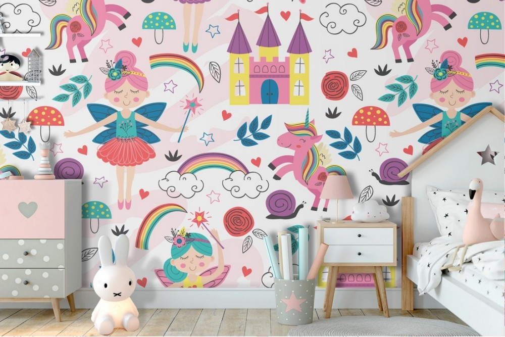 Carta da Parati decorazione fatine fantasy bambini.