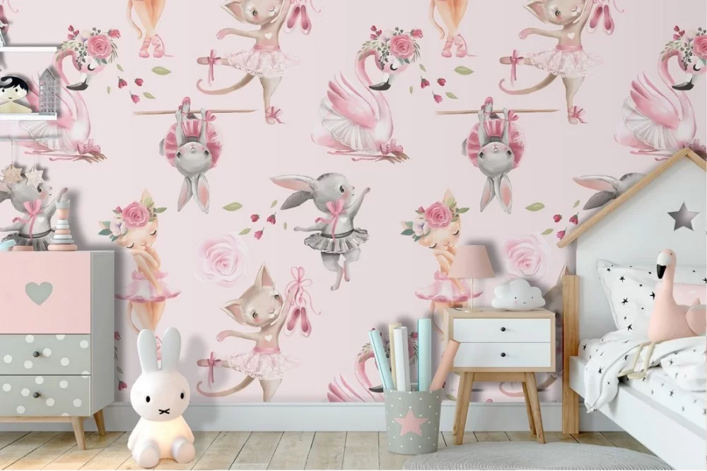 Carta da Parati animali ballerine decorazione bambini.