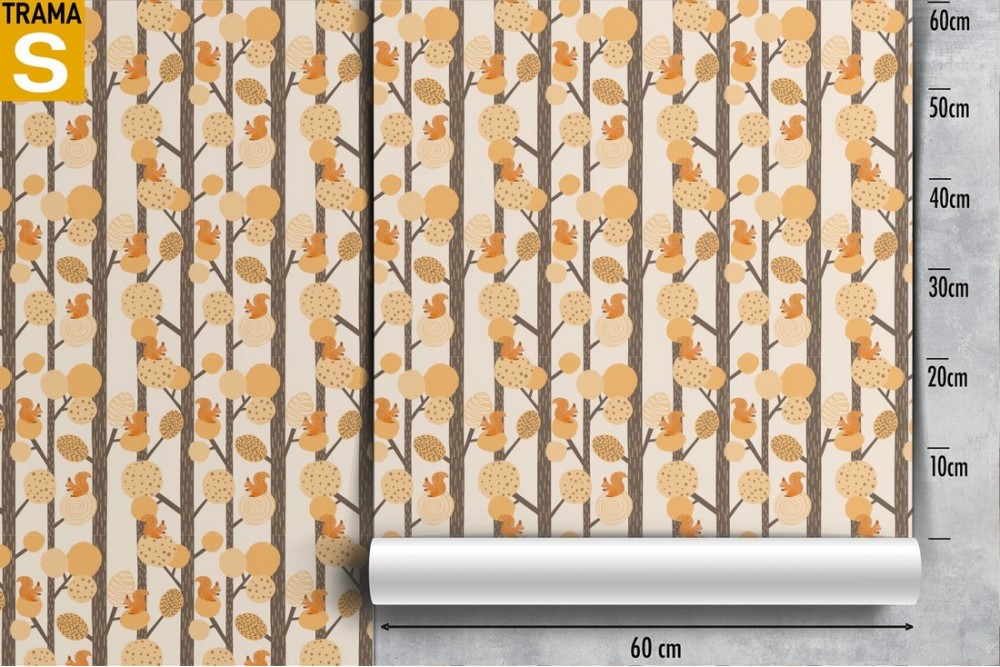 Carta da Parati bambini alberi stilizzati foglie autunno.